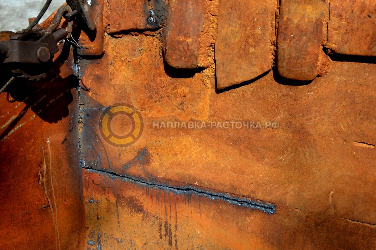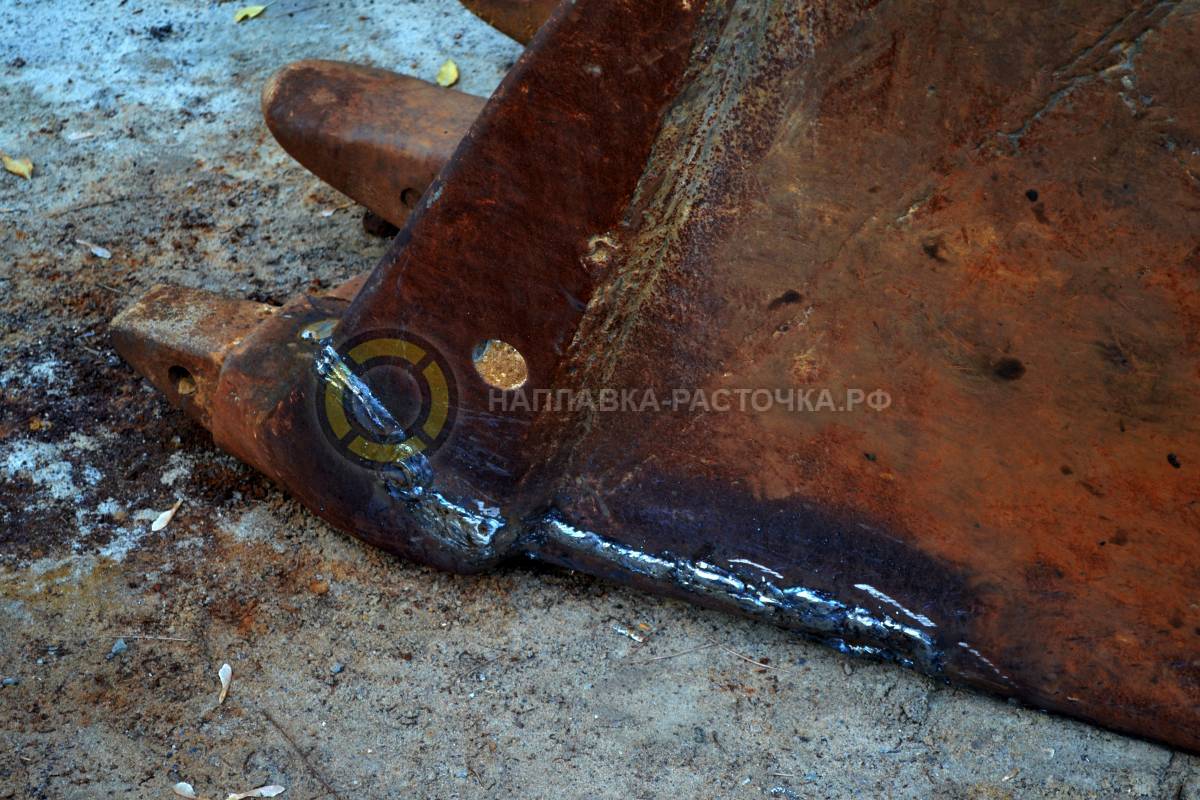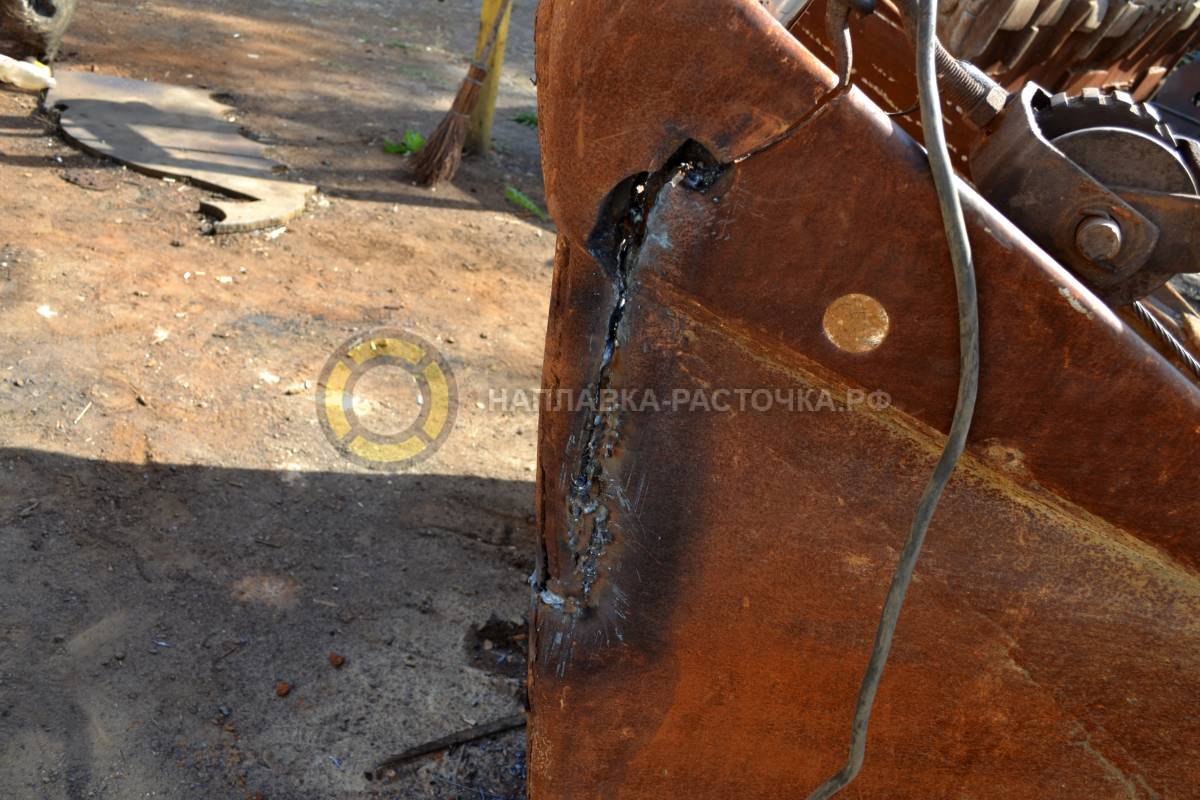 Устранение разрыва участка стыка подрезного ножа экскаватора с боковиной.