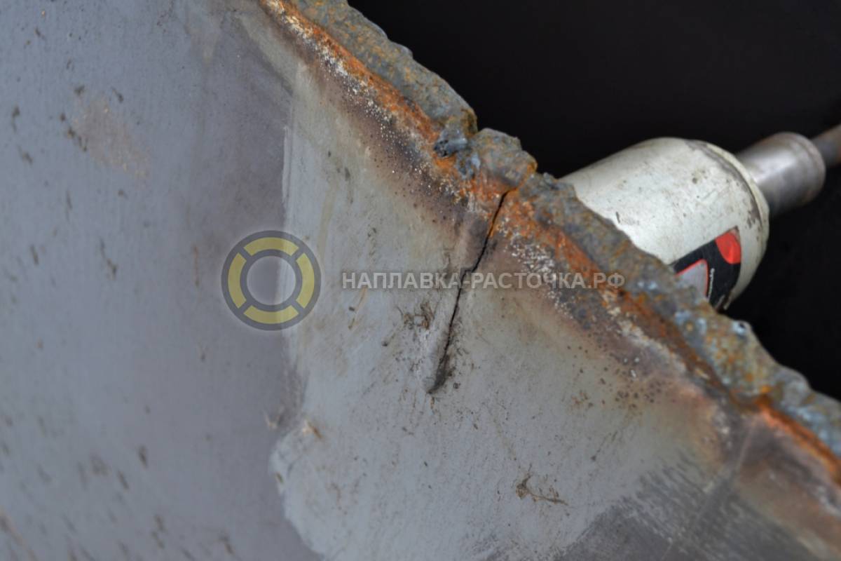 В ходе дефектовки выявлены многочисленные трещины в металлоконструкции.