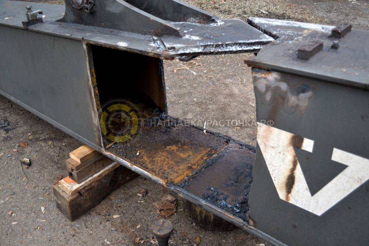 В процессе нашего ремонта было произведено вскрытие верхней части и двух боковин участка стрелы.