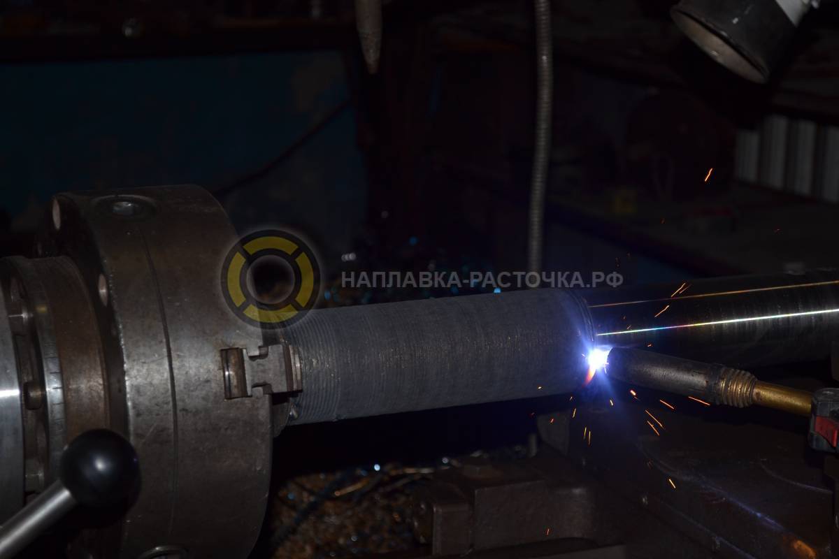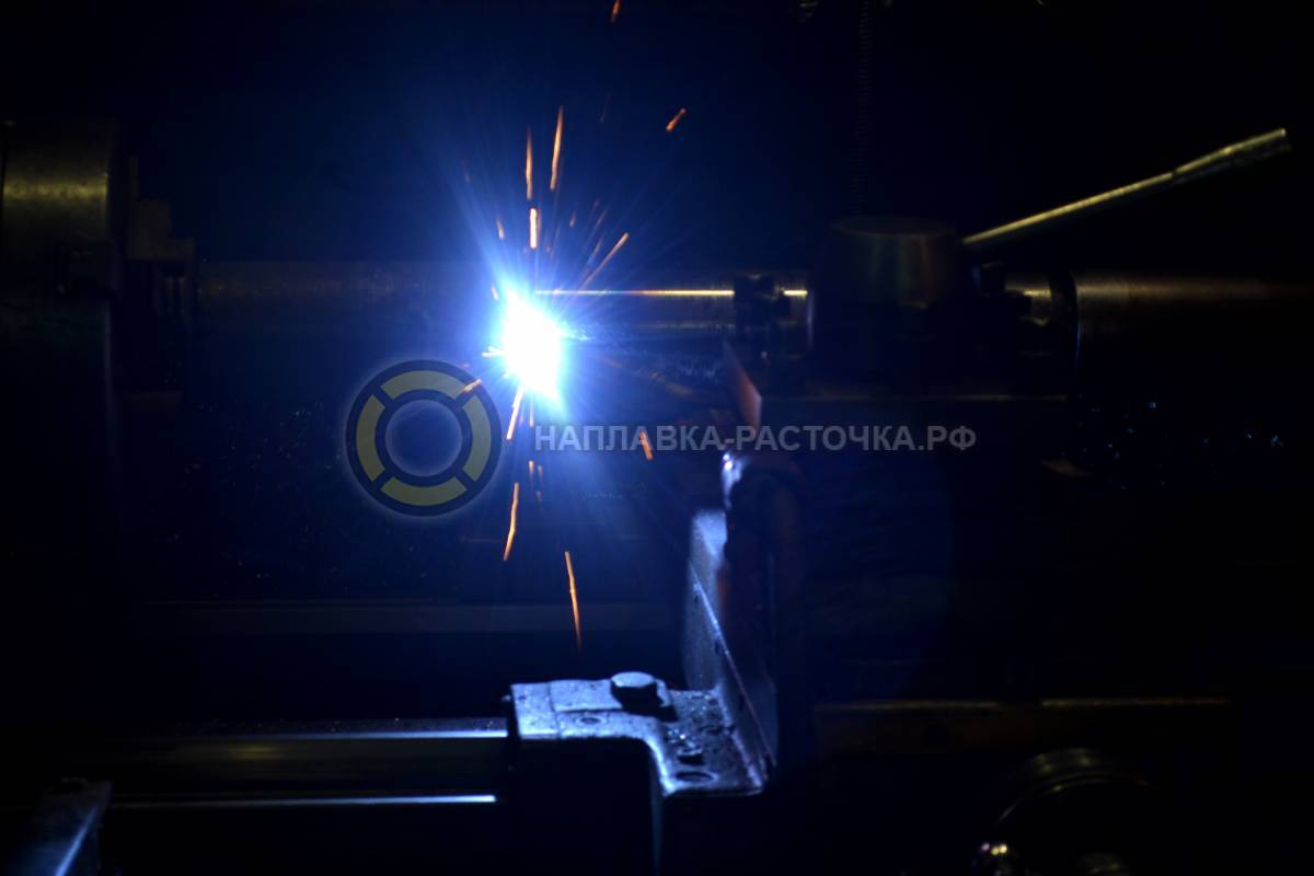 Наплавка осуществляется в автоматическом режиме омедненной проволокой в защитной среде смеси газов (аргон+углекислота).