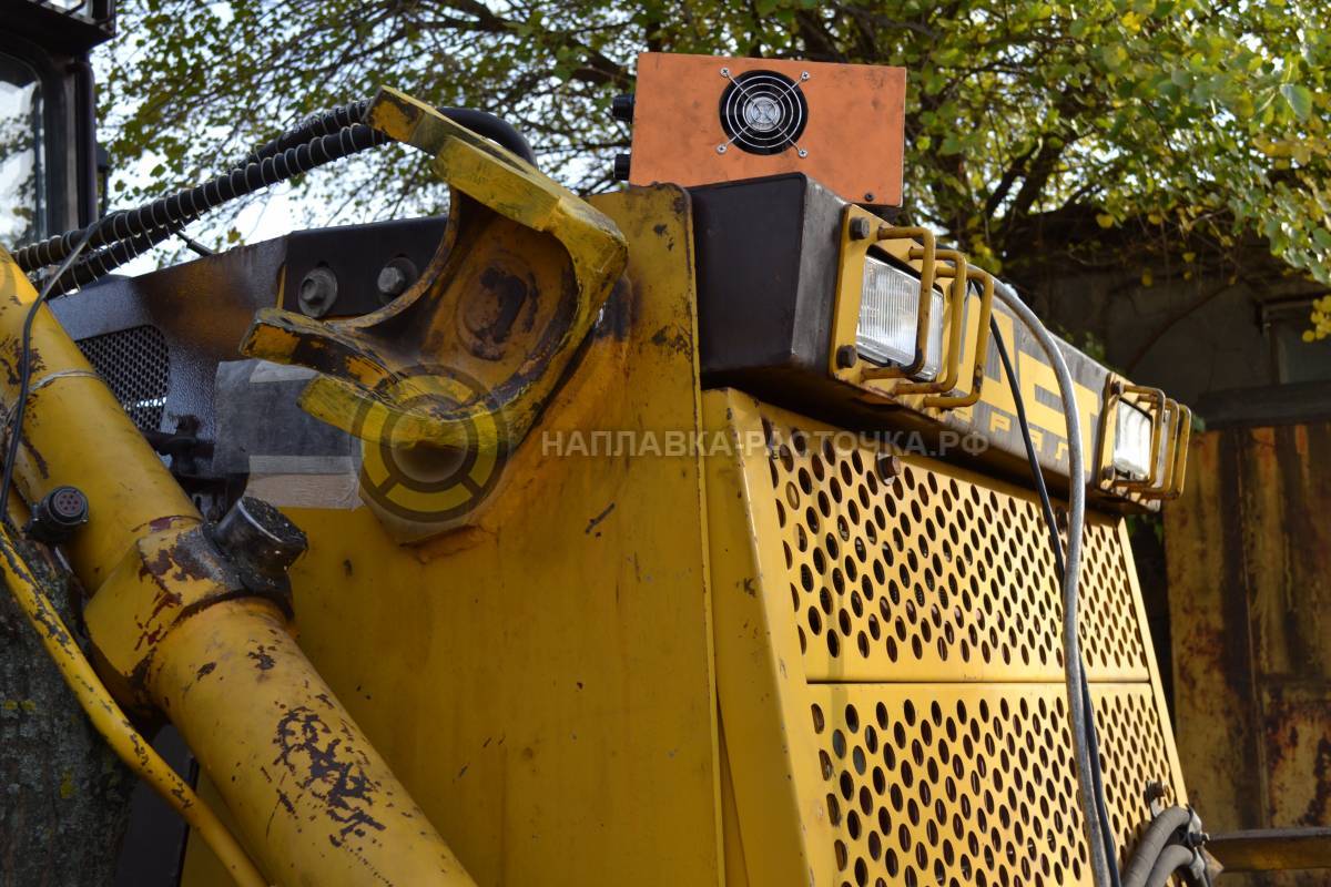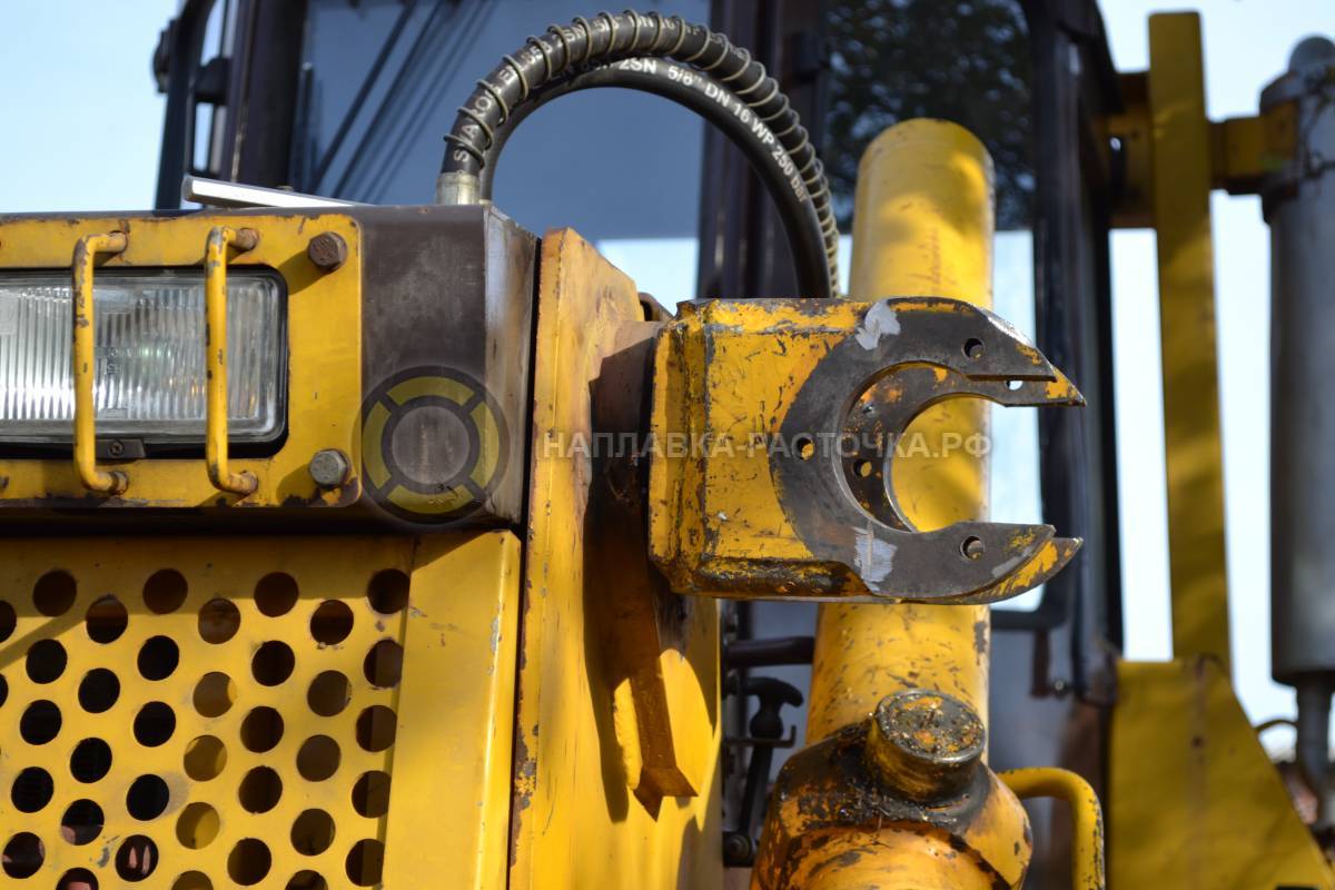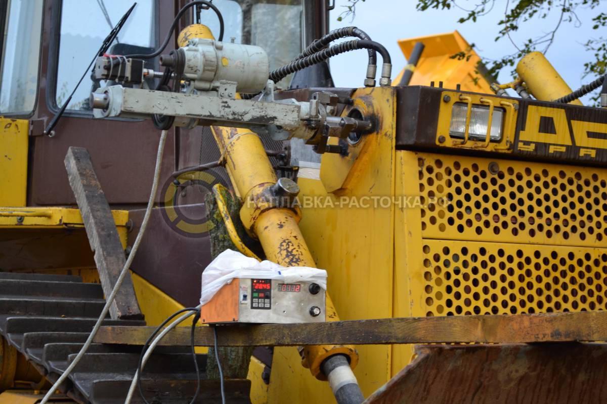 Гидроцилиндр отвала закрепляется на вилке (поз.2 рисунка). Диаметр вала вилки 85 мм. Вал вилки помещается в стакан трубы глубиной 200 мм передней части рамы бульдозера и стягивается с вилкой второго цилиндра винтом, проходящий по каналу диаметром 24 мм, располагающейся на другой стороне.