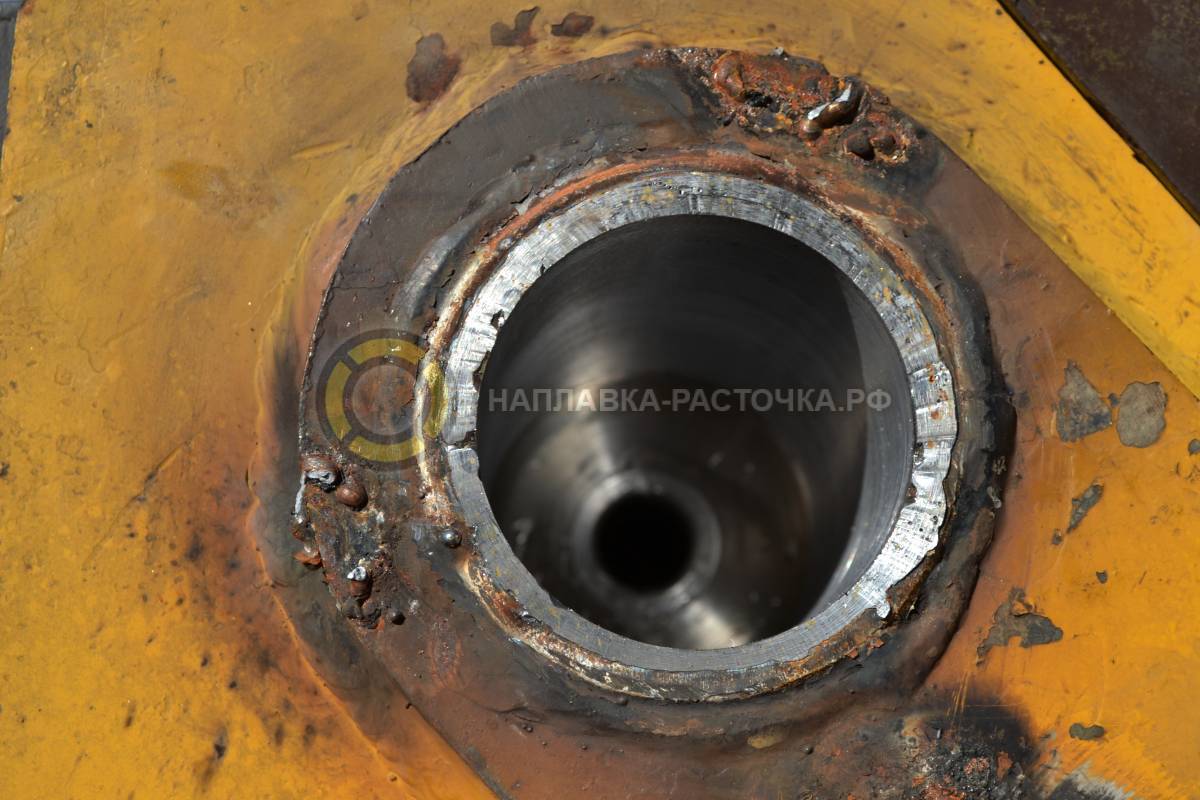 На данном примере мы покажем (фото-отчет) последовательность выполнения работ по восстановлению разнесенных между собой глубоких (200 мм) тупиковых отверстий при помощи переносного наплавочно-расточного комплекса.